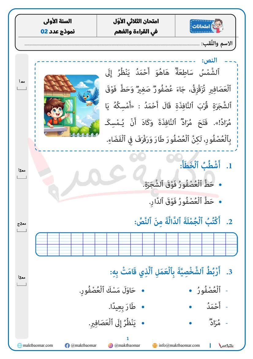 جميع امتحانات السنة الأولى 1️⃣ الثلاثي الأولبواسطة Admin / 26 أكتوبر، 2025 جميع امتحانات السنة الأولى 1️⃣ الثلاثي الأول