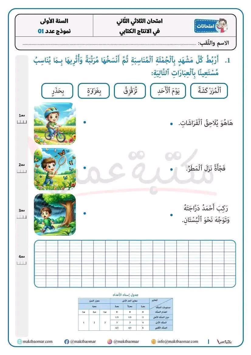 امتحانات الإنتاج الكتابي السنة الأولى 1️⃣ الثلاثي الثاني