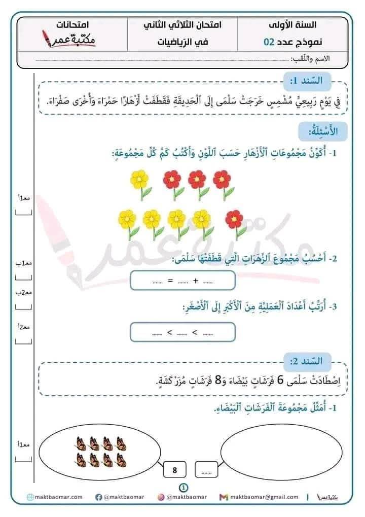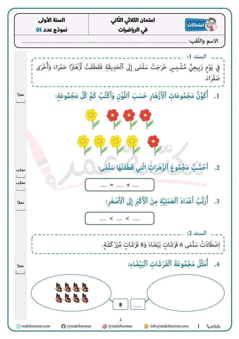 امتحانات رياضيات السنة الأولى 1️⃣ الثلاثي الثانيبواسطة Admin / 8 فبراير، 2026 امتحانات رياضيات السنة الأولى 1️⃣ الثلاثي الثاني