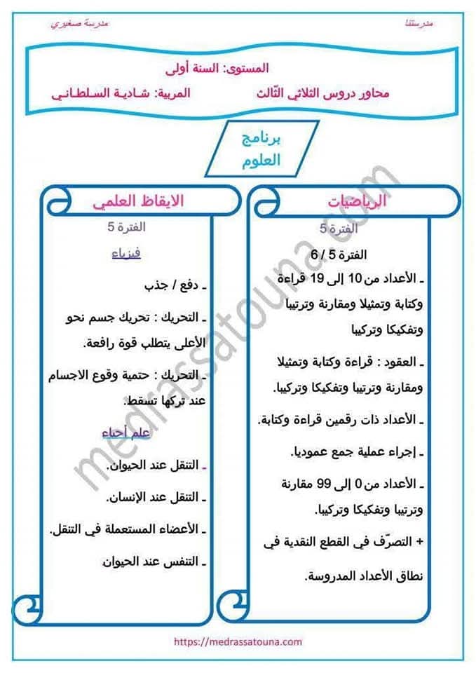 برنامج الثلاثي الثالث السنة الأولى 1️⃣