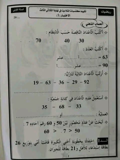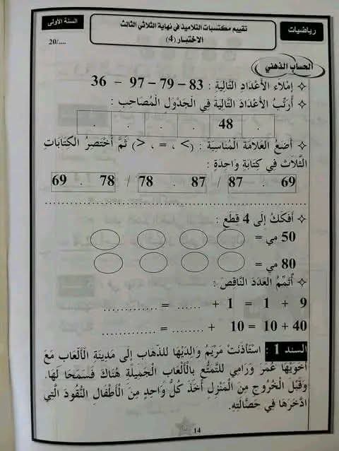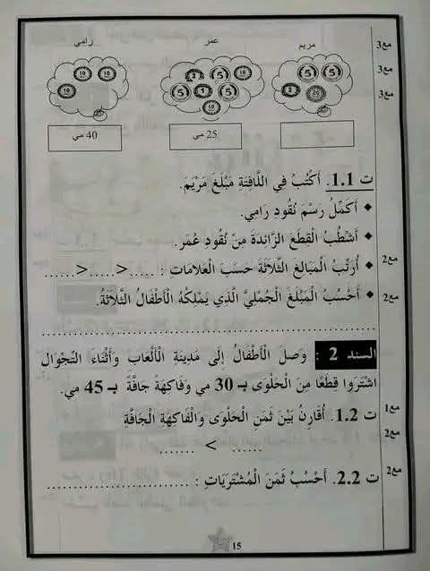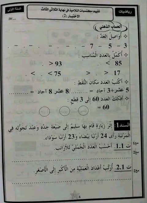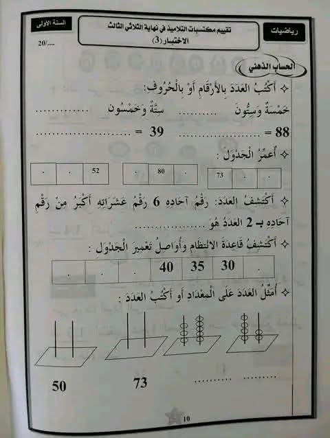 أهم ماسيتحقة تلميذ السنة الأولى 1️⃣ في مادة الرياضيات الثلاثي الثالث